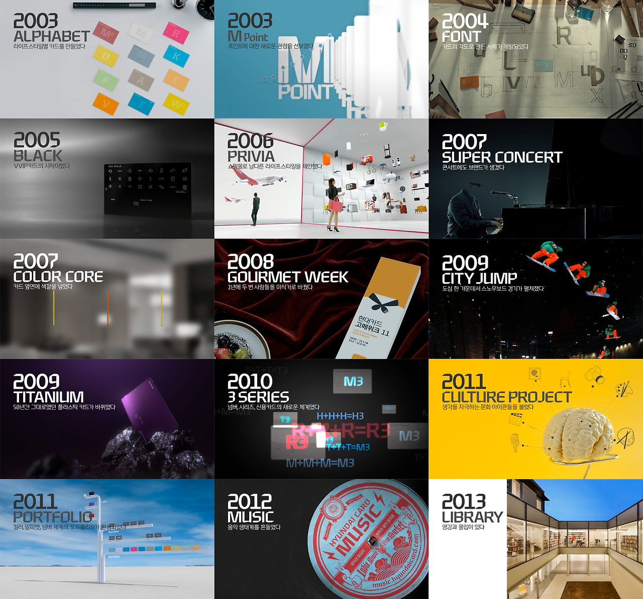 각종 신용카드가 난무하던 2001년 현대카드는 조금은 뒤늦게 창립을 했습니다. 그리고 2003년 특별한 카드를 출시합니다. 카드 전면에 커다란 알파벳 글자가 새겨진 카드의 각 알파벳은 라이프 스타일을 표현한 것이었죠.