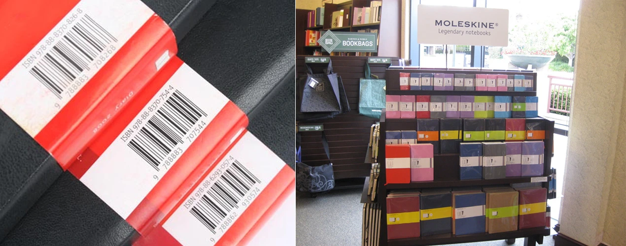 책을 파는 서점이라는 공간에서 몰스킨은 ‘책’이라 말합니다. 책으로 판매하기 위해 띠지에는 국제 표준 도서 번호 ISBN((Internation Standard Book Number)까지 넣어 디자인되었습니다. 공간과 시각물을 이용해 쓰여지지 않은 책을 만들어 낸 겁니다.
