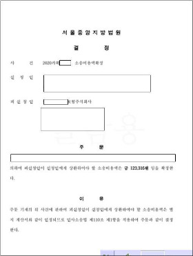 법원에 '소송비용 확정신청'을 제기해 결정문을 받을 수 있다. 그런데 이것 또한 변호사에게 의뢰하면 수십만원의 비용이 발생한다. 배보다 배꼽이 더 크다.