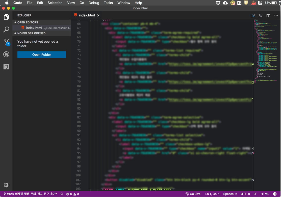 ⇢ 디자이너가 사용하기 좋은 code editor 툴로는 어도비의 브라켓(Brackets)이나 서브라임 텍스트(Sublime Text), 깃헙에서 만든 아톰(Atom) 등이 있습니다. 저는 마이크로소프트의 비주얼스튜디오 코드(Visual Studio Code)를 주로 사용하고 있습니다. 위에 나열한 코드 에디터 4가지를 다 써봤는데 약간 확장성 측면에서 비주얼스튜디오 코드가 제게는 편한 느낌이었고, 특별히 선호하는 이유는 없습니다. 작업에 편한 걸로 쓰시는 게 체고!