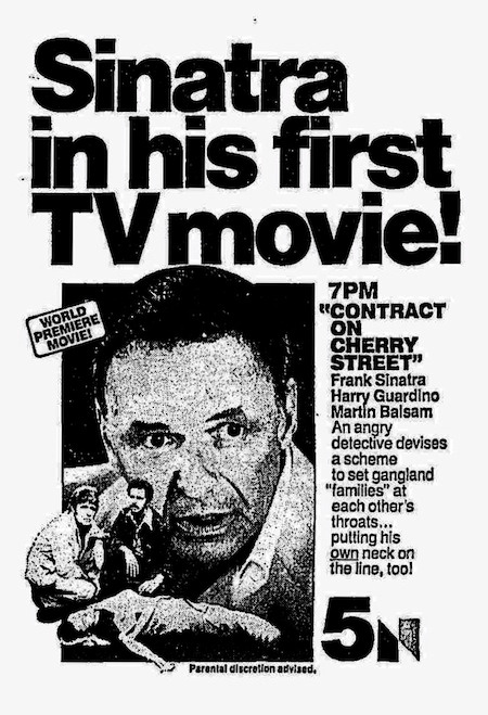 1957년엔 ABC방송사와 3년-3백만 달러의 계약을 맺고 The Frank Sinatra Show를 방영하기도 했다. 이 때 ABC방송사는 시나트라의 호바트 프로덕션 잔여지분의 60%와, 거기에 더해 시나트라의 영화제작사인 켄트프로덕션을 7백만 달러에 인수하기도 했다. 또한 1977년엔 TV경찰드라마인 Contract on Cherry Street에 주연을 맡기도 했다.