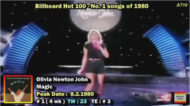 올리비아 뉴튼 존의 대표곡이라고 한다면 1981년 11월 21일부터 1982년 1월 23일까지 무려 10주 연속 1위를 차지한 Physical이 매우 유명하다고 할 수 있다.