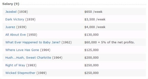 1950년. Bette Davis는 All About Eve개런티를 13만 달러 받았다.