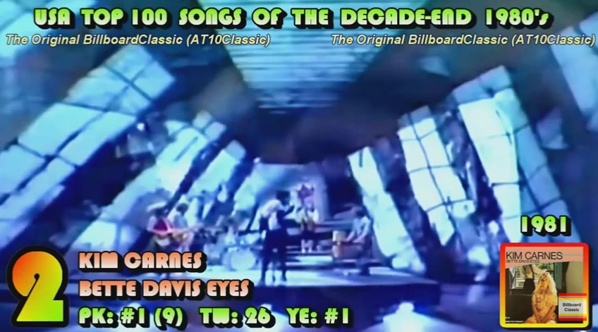 킴 칸스는 Bette Davis Eyes는 1981년 발매되고 나서 9주 동안 빌보드 최정상을 지켰으며, 1980년대 전체를 통틀어 올리비아 뉴튼 존의 ‘Physical’ 바로 다음으로 많이 팔린, 다시 말해 1980년대를 통틀어 두번째로 많이 팔린 노래가 된다.