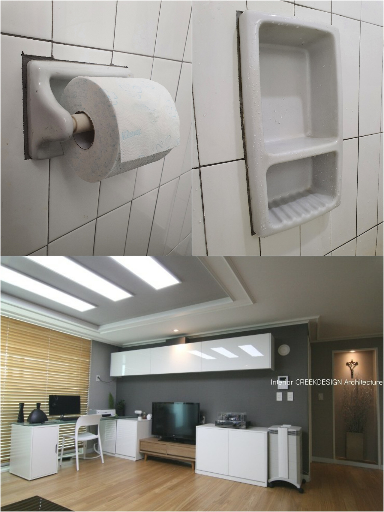 처음부터 지금까지 그리고 제가 사는동안에는 변함없을 것이 하나 있습니다. 화장실 휴지걸이와 욕실 선반입니다. 요즘은 찾아 볼 수 없는 도기로 된 제품입니다. 여간해선 작업자에게 화를 내지 않는 제가 십수년동안 호흡을 맞췄던 타일 반장님께 역정을 냈던 발단이 된 물건이기도 합니다. 안방과 거실 화장실에 모두 있었는데 잠깐 한눈 파는새 그가 거실쪽 휴지걸이를 부수고 말았습니다. 분명 그대로 쓸거라고 일러뒀건만 이전에는 그런 적이 없어서였는지 무심결에 철거하려 든 겁니다. 떼어 낸 휴지걸이를 아무리 만지작거려본들 귀퉁이가 깨진 이 물건을 다시 붙일 방법이 없었습니다. 그래서 우리 집 거실 화장실에만 최신 스텐 휴지걸이가 붙게 됐습니다.