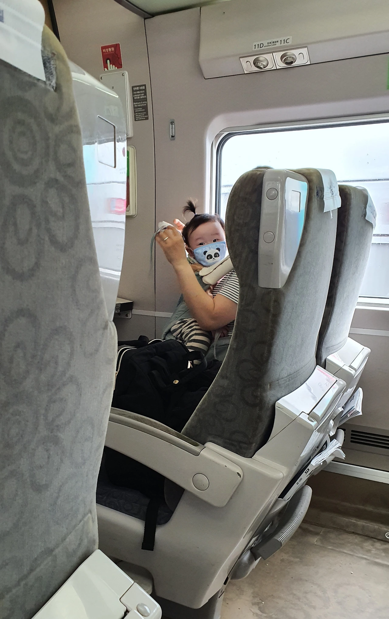 생각은 그랬지만 개운치않은 기분으로 좌석을 찾아 앉았다. 뒤이어 노부부와 아기를 품에 앉은 젊은 엄마가 문을 열고 들어선다. 노부부는 내 앞좌석에, 젊은 엄마는 나란한 그 옆좌석이다. 눈만 붙은 고것도 당당히 한 좌석을 차지한다. "엄마하고 여행가는구나. 몇개월이에요?" "8개월이에요" "아휴~ 이뻐라. 용케 마스크도 안벗네." 앞좌석에서 오가는 대화를 듣다보니 자연스레 몸이 앞으로 기운다. 동여맨 머리가 봄비에 돋아난 새싹같다. 꼬맹이와 눈이 마주쳤다. 소리없이 '깍꿍...우루루 깍꿍'을 시전한다. 마스크 위로 빼꼼히 내민 녀석의 쬐끄만 눈이 까르르 웃는다. 젊은 엄마가 누군지 돌아본다. 거기에 한 주책맞은 아저씨가 손짓 눈짓으로 재롱을 떨고있다. 이내 좌석에 몸을 기댄 그녀가 손을 흔든다. '아기를 이뻐해줘서 고맙다는 걸까?' 착각이었다. 차창밖에 젊은 사내가 열차안을 시선을 고정하고 서있다. 아기 아빠가 아내와 자식을 배웅하러 나온 것이다. 친정나들이를 가나보다. 젊은 부부는 손 인사와 눈짓으로 애틋한 사랑을 확인한다. 그러거나 말거나 나는 녀석의 환심을 사는데 열심히다.