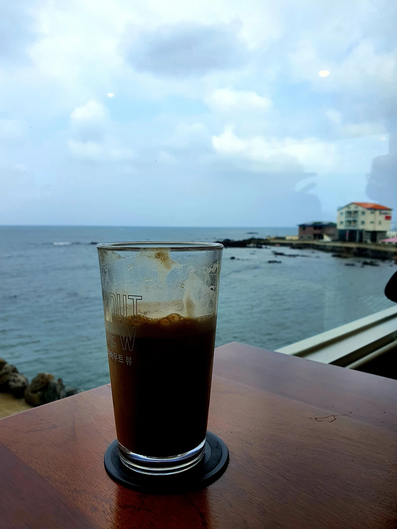 게다가 그들은 컴컴한 우주에서 파우치에 담긴 우주식량을 뜯으며 매표소 창구같은 작은 창으로 골프공 만한 지구를 내려다 볼 것이다. 나는 지금 달달한 아이스 카라멜 마키야또를 마시며 주체하기 힘들만큼 쏟아지는 햇볕을 받으며 (게다가 에어컨은 빵빵하다) 커다란 창가에서 끝없이 펼쳐진 바다를 보고 있다.