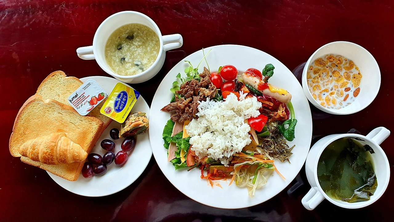 차를 갈아타고 돌아오니 9시다. 딸은 어쩐 일로 샤워까지 마치고 애비를 기다린다. 혼자일 땐 오메기 떡과 컵라면으로 때우던 애비는 딸을 위해 간 떨리는 리조트의 아침 조식 부페를 쏜다.