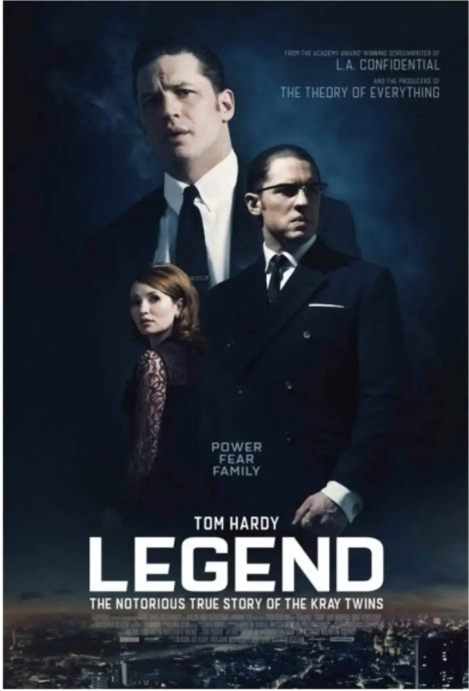뒷짐을 지고 느긋하게 걷는 경찰, 세계최고의 cctv 설치율로 범죄발생률도 낮고 치안도 좋은 나라로 손꼽히는 섬나라가 영국이다. 그런데 60년대 영국에는 비틀즈만큼이나 시대 아이콘이었던 쌍둥이 갱스터가 있었다. '크레이형제' 당시 런던을 장악하고 물 건너 온 마피아가 협조를 청할 정도로 기세등등했던 갱단 '크라임 펌'의 보스가 그들이다. 오죽하면 공권력도 어쩌지 못할 정도로 맹위를 떨친 이 형제를 주인공으로 한 영화 제목이 레전드(REGEND 2020)일까.