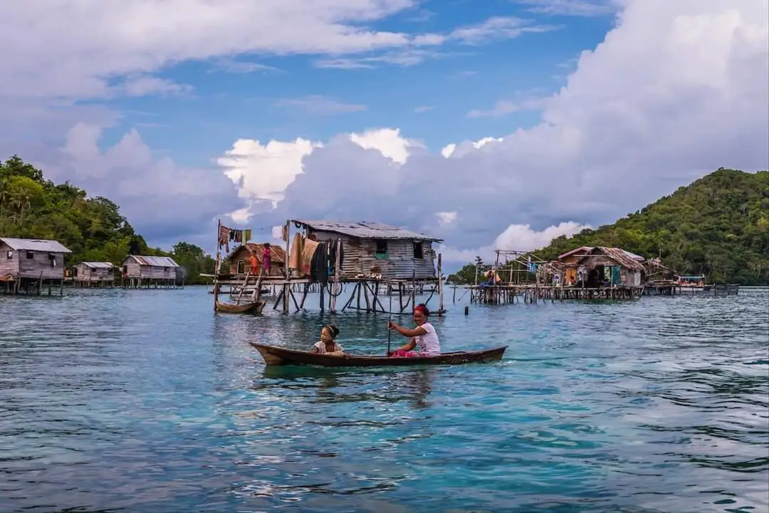 바다에 떠내려 온 나무로 '뽄도한'이라는 수상가옥을 짓고 집과 집을 잇는 다리 같은 길을 놓아 한 마을을 만든다. 대여섯가구로 이루어진 마을은 친족으로 이루어진 작은 공동체다. 그들에게도 하루하루의 삶은 중요한 것이어서 '경작'을 하고 '사냥'을 한다. ‘아갈아갈’이란 우뭇가사리 같은 해초를 양식하는 것이 농사이고 드넓은 바다에서 고기를 잡는 것이 사냥이다. 척박한 삶 속에서도 여인네들이 아름다움을 가꾸는 일은 소중하다. 쌀과 해조를 빻은 가루에 물을 섞어 얼굴에 바른다. 이 '버락'이 천연 자외선 차단제이자 유일한 화장품이다. 인간이 살아가는데 필수적인 물을 바다 한 가운데에서 어떻게 조달하는 지 궁금해졌다. 빗물을 받아 저장해서 쓴다.