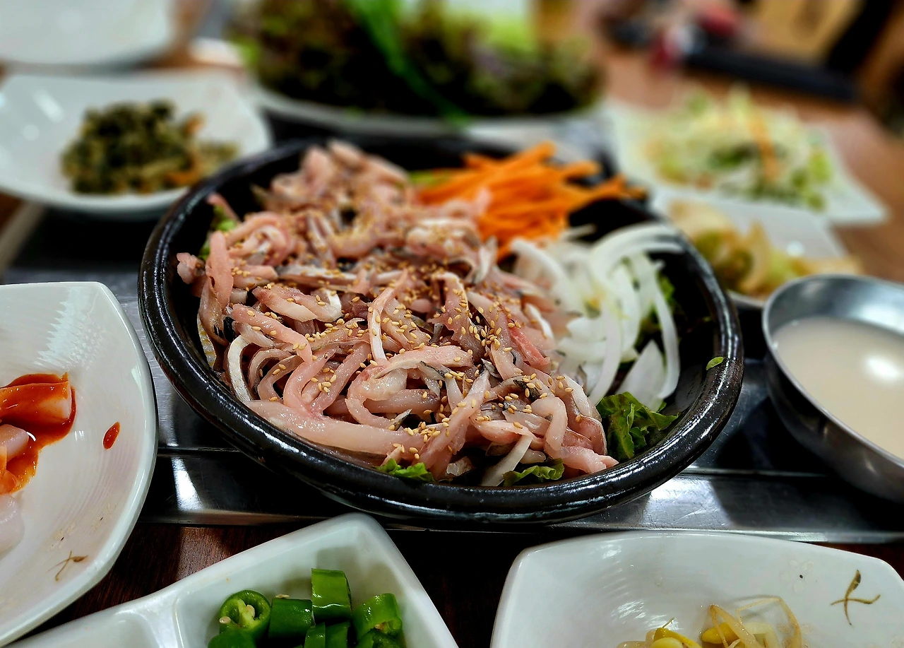 웅어의 제철은 늦봄, 초여름 딱 지금이다. 더 고소하고 뼈가 덜 빡세기 때문이다. 족보를 더 더듬어 올라가면 청어목에 속한다. 청어목이라선지 기름지고 고소한 맛이 일품이다. 도다리, 전어는 내일 오라고 한다. 느끼하지 않고 담백해서 아나고를 연상하게도 하는데 더 부드럽게 씹힌다.