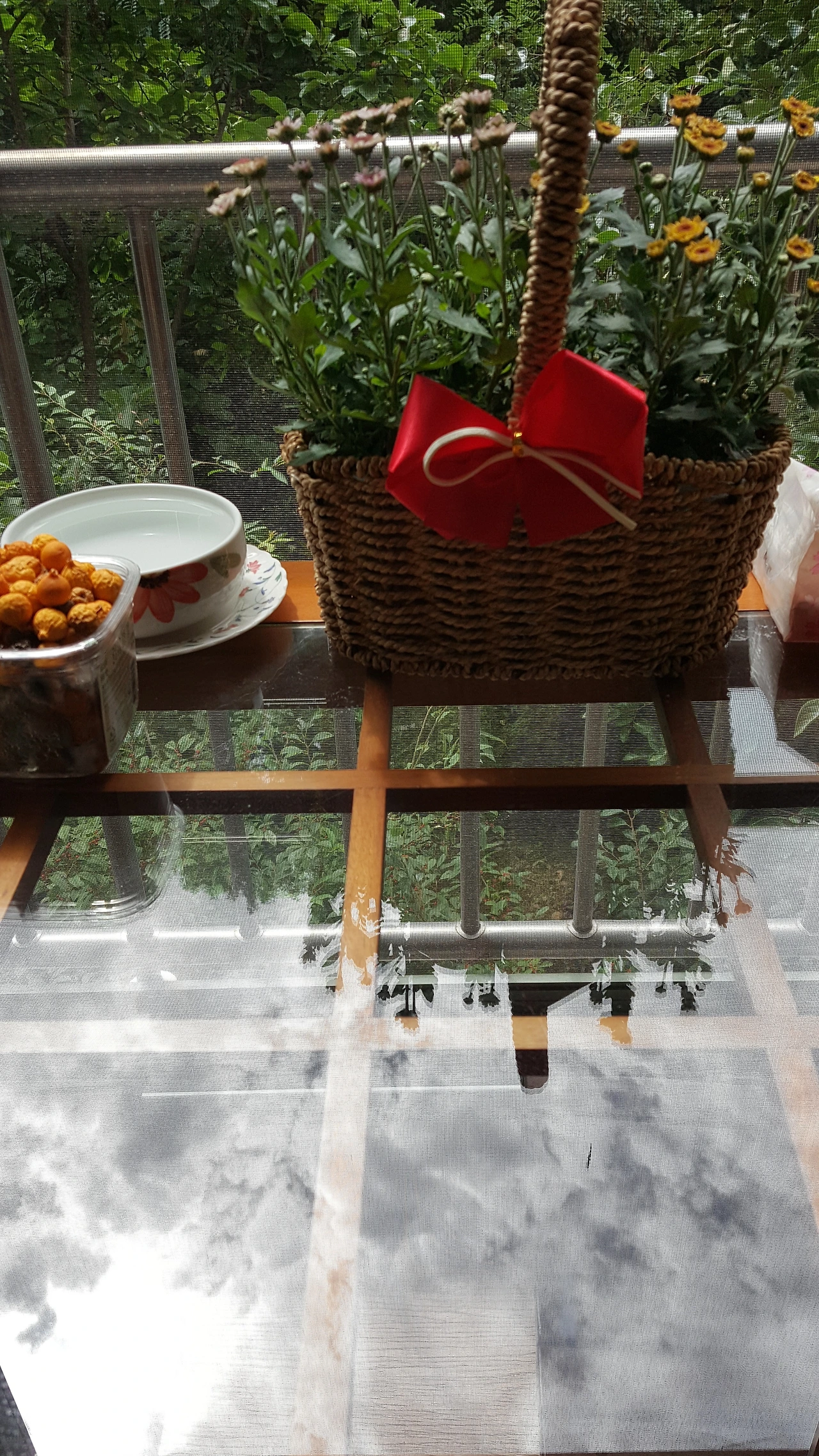 선생님이 사진 한장으로 답장을 하셨다. 베란다에 빨간리본 꽃소쿠리가 놓여있던 유리 탁자. 맞은 편 정원의 녹음이 새삼 그립다. 이내 그 마음을 전했다.