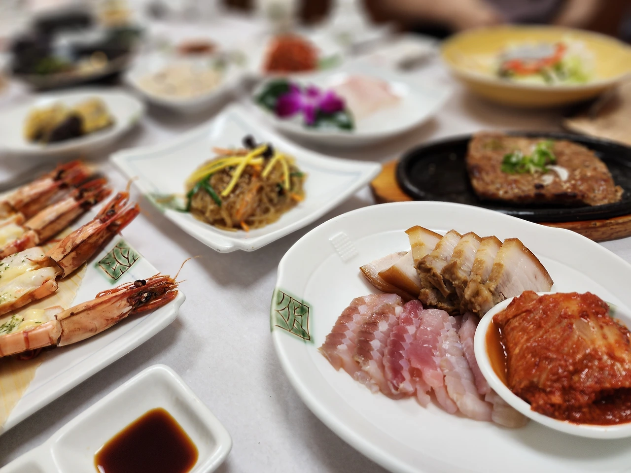 떡갈비, 홍어삼합, 새우구이, 잡채.... 테이블이 벌써 꽉 찼는데 나중에 보리굴비와 간장 게장이 따로 다시 나온다고 했다.