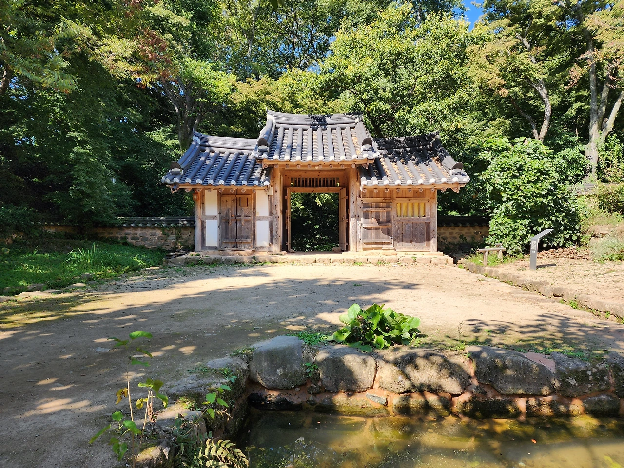 왼쪽 좁은 수로에서 시작한 아래로 넓직한 연못으로 흐르는 물. 민가최초로 발견된 '유상곡수' 다.