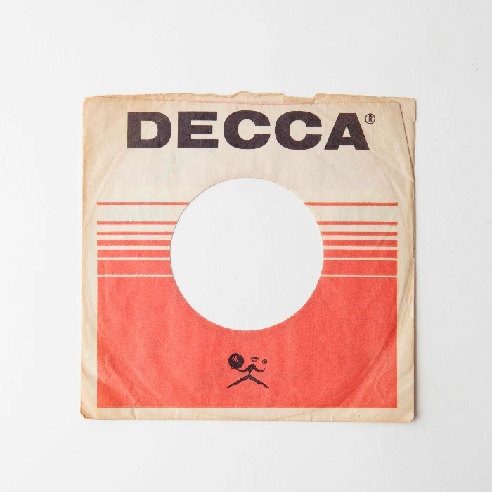 굵직한 DECCA 로고와 단순한 붉은 블록, 수평으로 뻗은 선 몇 줄. 아티스트의 이름도, 화려한 장식도 없다. 그러나 그 단정한 면과 선만으로도, 이 종이는 강하게 말한다. “우리는 DECCA다.”