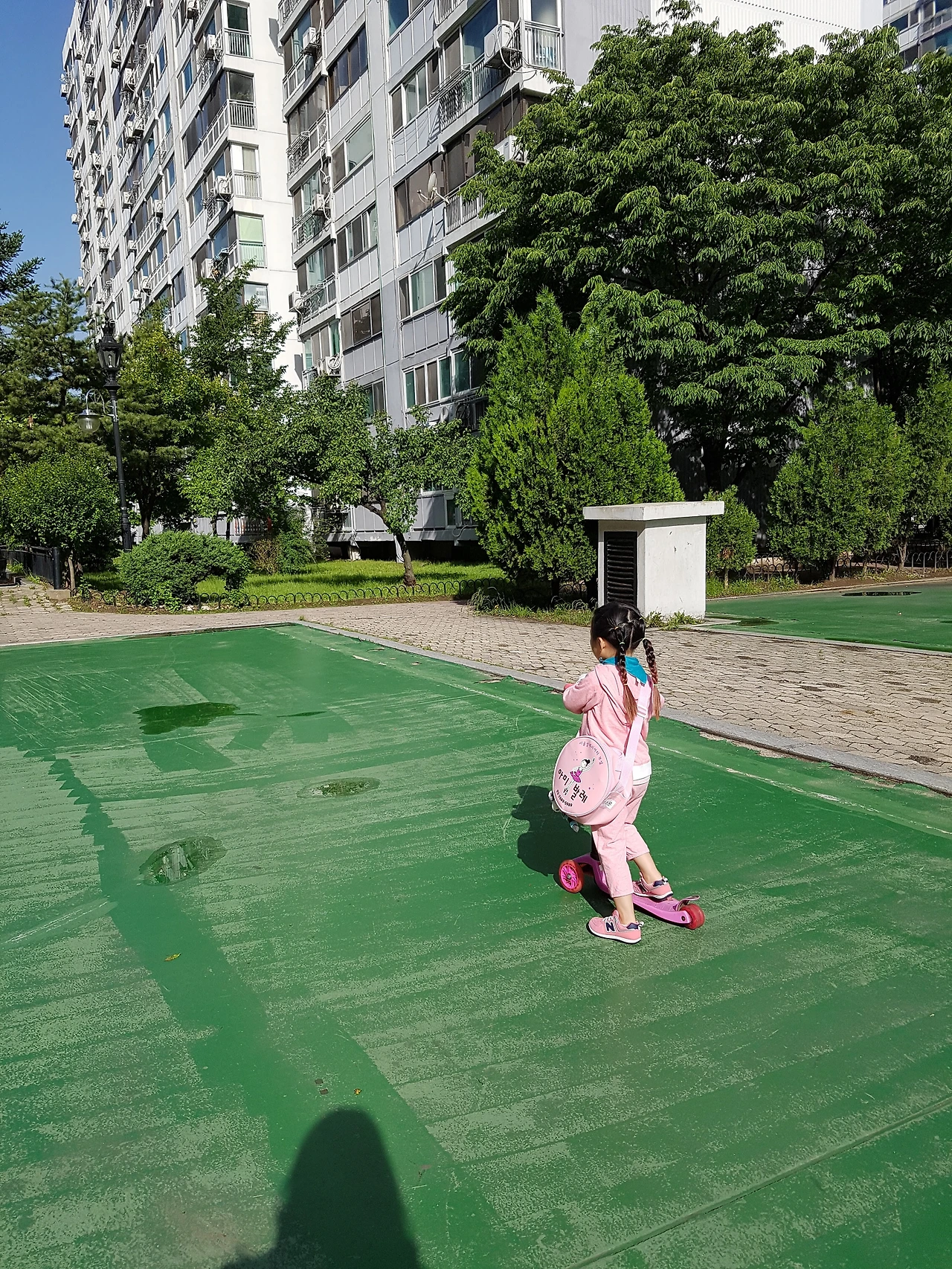 유치원과 동급의 누리과정 학습, 우리 동 바로 앞, 걸어서 2분 거리 위치.