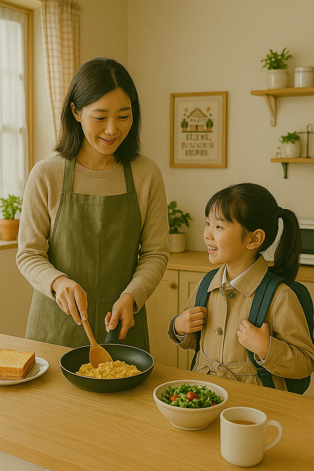 <사진 설명> Chat GPT로 만든 이미지 '식사시간과 잠들기 전 아이와의 교감은 엄마로써 놓치고 싶지않은 순간들'