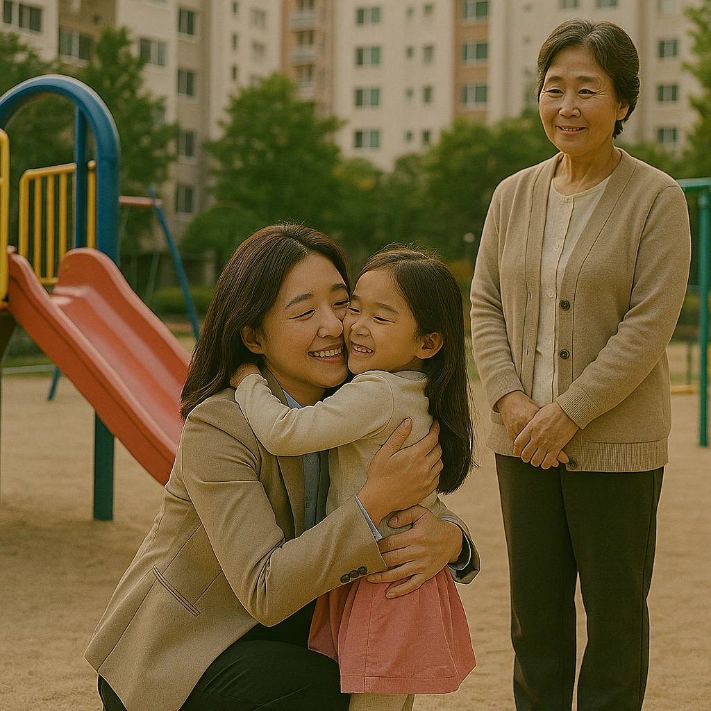 4시쯤 하원한 딸아이가 돌봄 선생님과 놀이터에서 맞아주거나,