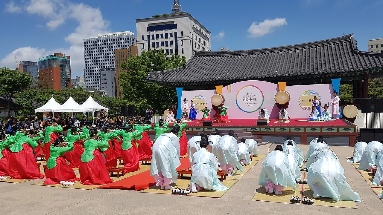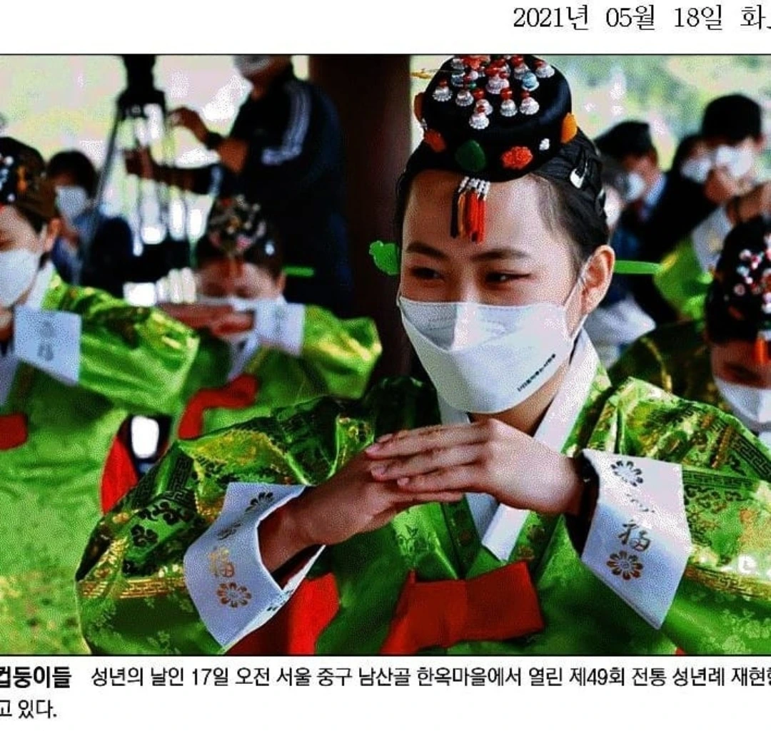 “그러게요~ 오늘 성년의날 행사인데, 진짜 비 왔으면 사진 다 망할 뻔했잖아요~. 햇살도 좋고, 애들 예복도 화사하고~ 기자님들 카메라 셔터 터지는 소리 들리시죠? 사진 잘 나오겠어요~ 후후.”