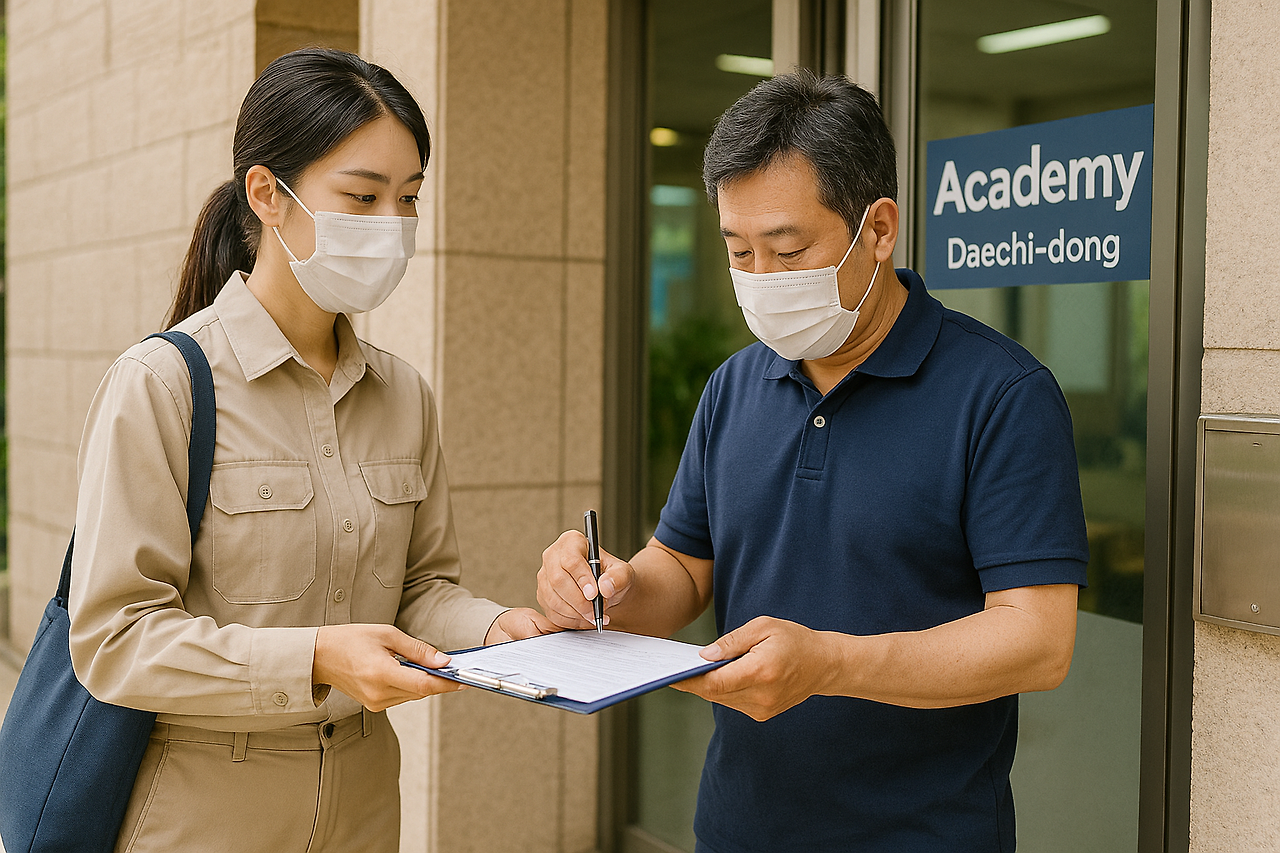 꼼꼼한 방역 점검 서류에 학원 원장 또는 방역 관리자의