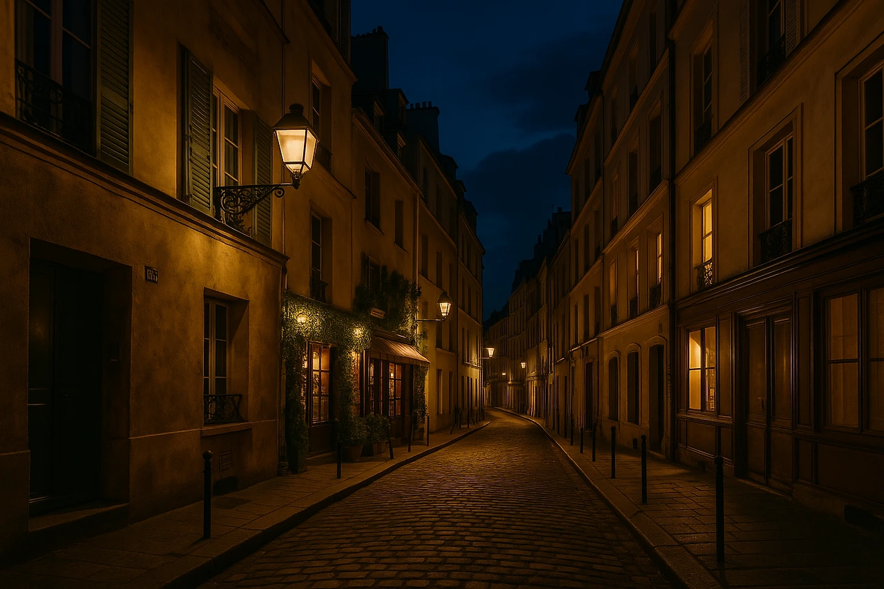 좁은 골목 작은 건물들이 어둠 속에서도 존재감을 뿜어내고 있었다.