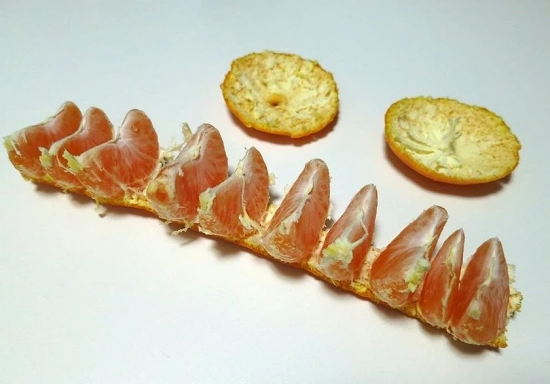 이 사진을 게시 한 것은 Market Data Research(@MD_Research) 씨. 사진을 보면, 아주 멋진 방법으로 껍질이 벗겨진 "귤"이 보인다.