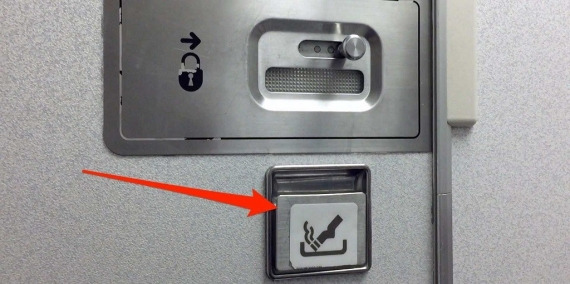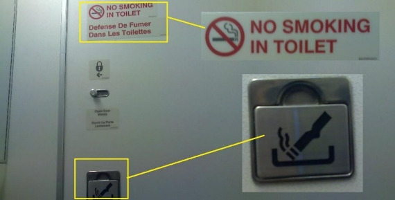 연방 규정집(미국의 행정규칙을 성문화한 법전)의 항공기의 내공성(耐空性)에 관항 항목에서는... "비행기의 다른 부분에서 흡연이 허용되는지 여부에 관계없이, 화장실에는 독립식의 이동식 재떨이, 출입문 근처의 눈에 띄는 곳에 설치한다" 라고 되어있다.