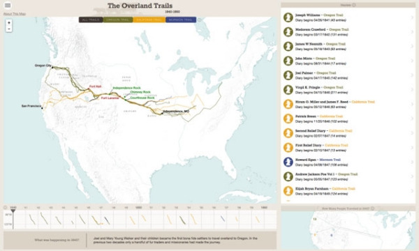 American Panorama는 다양한 데이터를 지도에 함께 시각화함으로써, 미국의 역사를 해독하는 프로젝트이다. 각각의 지도는 인터랙티브 사양으로 되어 있기 때문에 시대마다, 지역마다 배울 수 있다.