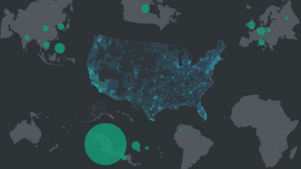 리치몬드 대학의 Digital Scholarship Lab과 Stamen Design이 합작 한 새로운 프로젝트 American Panorama를 보면, 그것이 아주 잘 나타난다. 1850년 우선은 유럽에서 사람들이 이주하기 시작하여 멕시코, 중미.