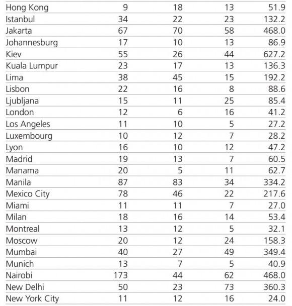 이어 인도네시아 자카르타로 468시간, 이집트의 카이로에서 353.4시간으로 되어있다. 특히 자카르타와 카이로에서는 iPhone 6의 가격뿐만 아니라 필수품 인 빵은 미국에서조차 다른 나라에 비해 고가라는 사실을 알 수 있다. 이것은 그 나라의 인플레이션 상황을 잘 말해주고 있다.