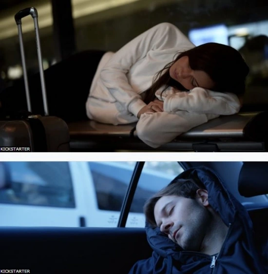 후드 모자 부분에 공기를 불어 넣어 부풀리면 베개가 되는...그런 타입이다. 측면 내부로부터 공개를 불어 넣으면 뒤쪽 모자 부분이 부풀어 푹신 푹신한 베개로 바뀌는~