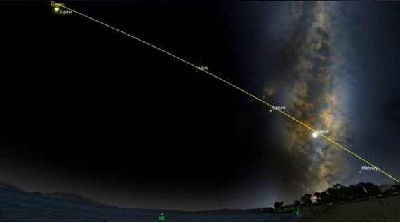 Australian Geographic이 전하는 바에 따르면, 이달 20일부터 다음달 20일 까지 5개의 행성이 일렬로 늘어선 이른바 "행성 직렬"을 볼 수 있다고 한다.