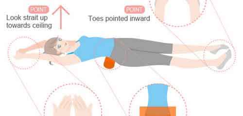 가로로 베개를 배꼽 아래에 오도록 깔고 눕기만 하면 된다. 손은 머리위로 쭉 뻗어 새끼 손가락끼지 서로 붙이고..다리는 엄지끼리 붙이는 것 뿐이다.