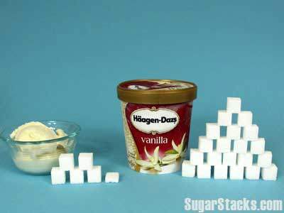 하겐 다즈 바닐라의 경우 424g들이의 1컵 설탕 84g. 총 칼로리 : 1080kcal