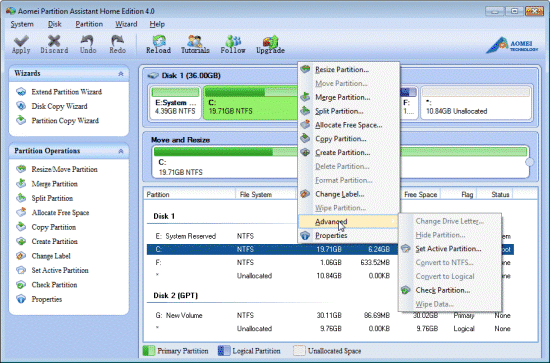 "AOMEI Partition Assistant Standard Edition"도 무료 파티션 관리 도구이다. 인터페이스는 그렇게 독창성이 있는 것은 아니지만, AOMEI Partition Assistant Standard Edition은 독특한 프로그램이다.