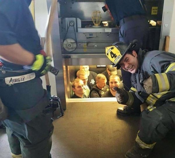 지난 4월 27일 오후 1시경, 미국 미주리 주 캔자스시티의 경찰 학교에 있는 엘리베이터가 고장, 갇힌 경찰관을 구출하기 위해 소방관이 출동하여 구출하는 장면이 사진에 찍혔는데....