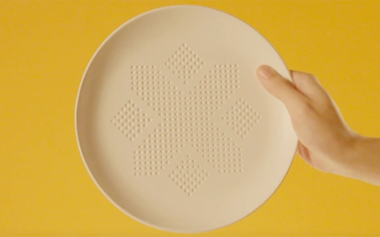그 접시는 "AbsorbPlate". 태국 건강 증진 재단과 광고 대행사 BBDO가 제작 한 동영상에 따르면, 이 접시에는 500개의 작은 홈이 있다고 한다.