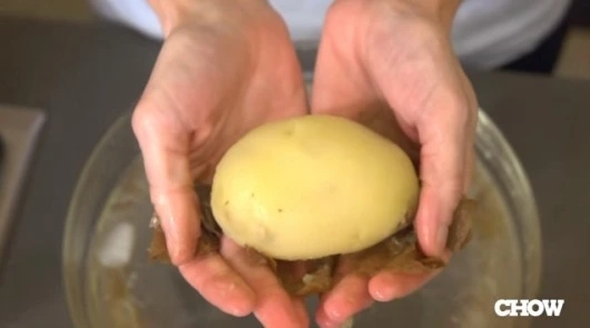 감자 껍질을 벗기는 일은, 분명히 좀 지루하고 성가신 작업이다. 그러나 요리계의 유명한 블로그 "Chow"에는 맨손으로 아주 쉽게 감자 껍질을 벗기는 방법이 소개되어 있다.