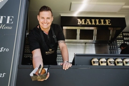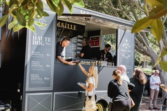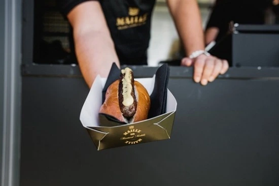 고급 겨자 브랜드의 "마이유"가, 호주 멜버른의 "굿 푸드 앤 와인 쇼"등에서 판매하고 있는 "Haute Dog"이다. 이동 판매 차량으로 제공되는 이 핫도그는, 소시지 겨자라는 전통적인 외형이지만, 각각의 소재에 집착을 보이고 있다고 한다.