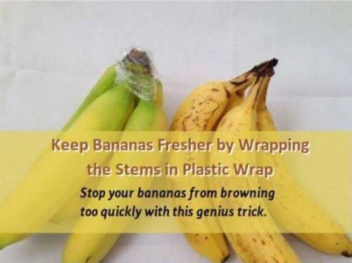 바나나는 뿌리 부분만 랩을 싸는 것만으로 신선함을 유지할 수 있다.