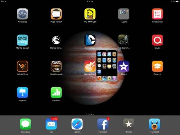 iPad Pro의 아이콘 사이의 공간은 324 픽셀, 한편 초대 iPhone의 너비는 320 픽셀로 되어있다.