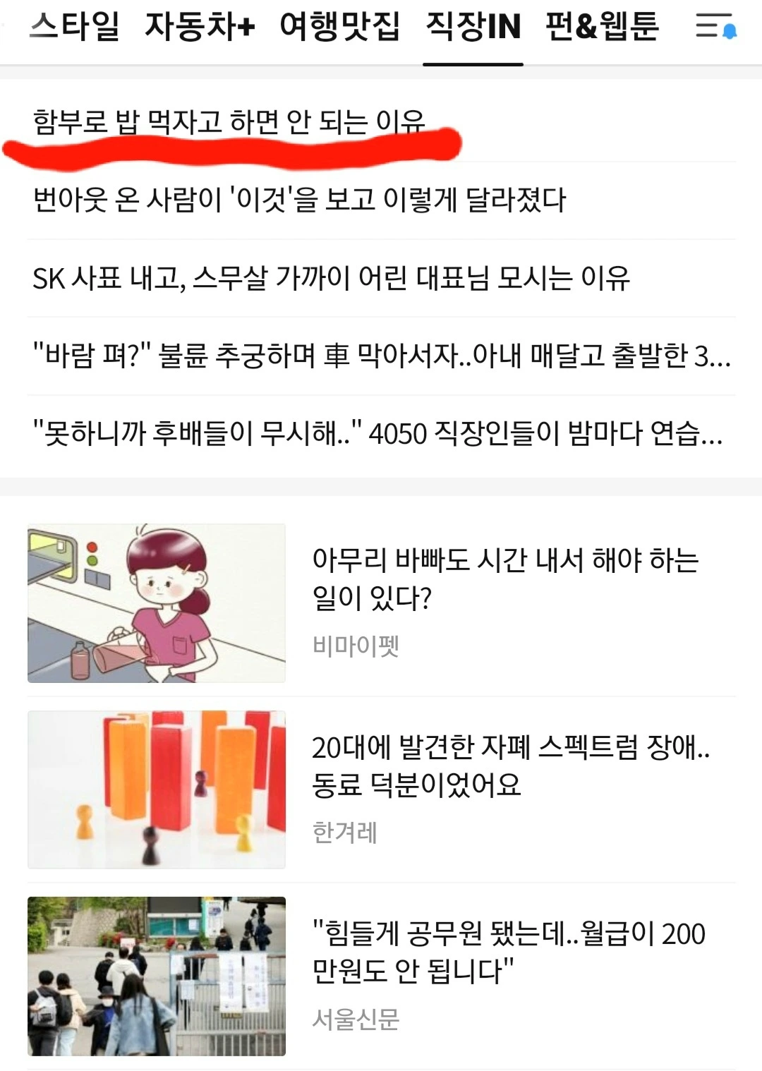 다음 메인에 오른 '함부로 밥 먹자고 하면 안 되는 이유'