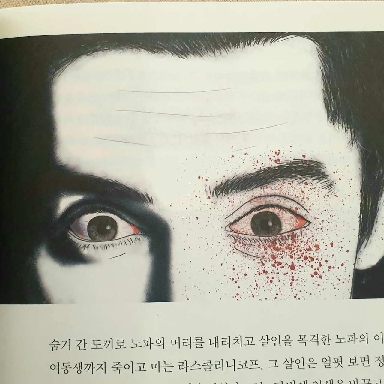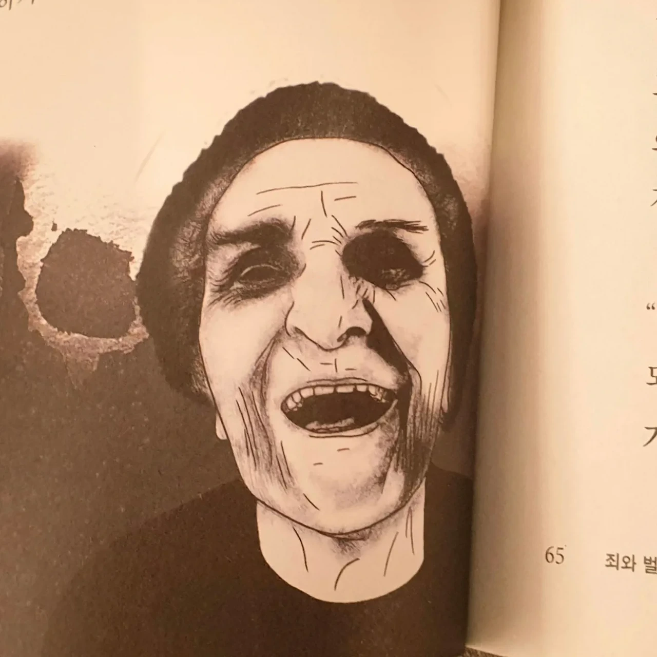 그러던 어느 날 문득 눈에 띄길래 한번 읽어줘야지, 하며 친근한 '죄와 벌' 편을 읽었다. 스토리를 알고 있던 차에, 짧게 요약한 내용을 읽으니 너무 재미있는 것이었다. 게다가 자칫 딱딱할 수 있는 내용을 신랄한 그림으로 보완함으로써 친근함과 가독성을 높인 것은 저자의 묘수였다.