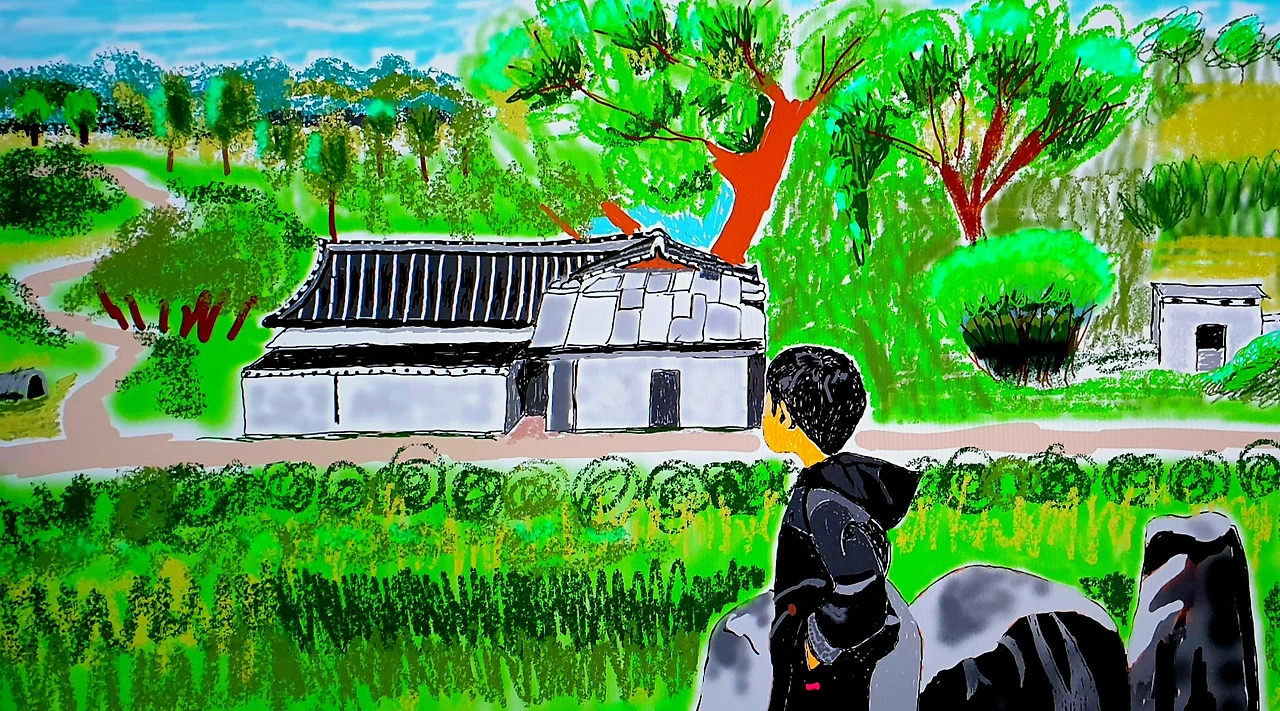 시골집을 바라보는 아들 (로드퓨처 그림)