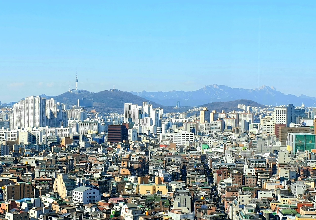 카페에서 찍은 사진, 멀리 남산타워까지 보인다.