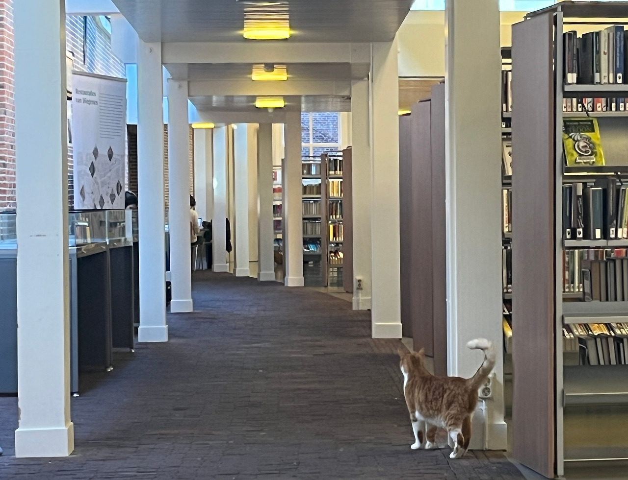 앗 지금 고양이가 도서관에 난입했어요! 도서관을 배회하고 다녀도 아무도 뭐라 하지 않아요. 네덜란드는 pet friendly 해서 카페나 음식점에 중형견을 들여도 됩니다. (일반화할 순 없지만 대체로 그런 것 같습니다) 오늘은 아침부터 뭔가 다이내믹한 일들이 있었네요! 뭐 숙소에서 핸드폰만 보고 있는 것보단 훨씬 좋습니다.