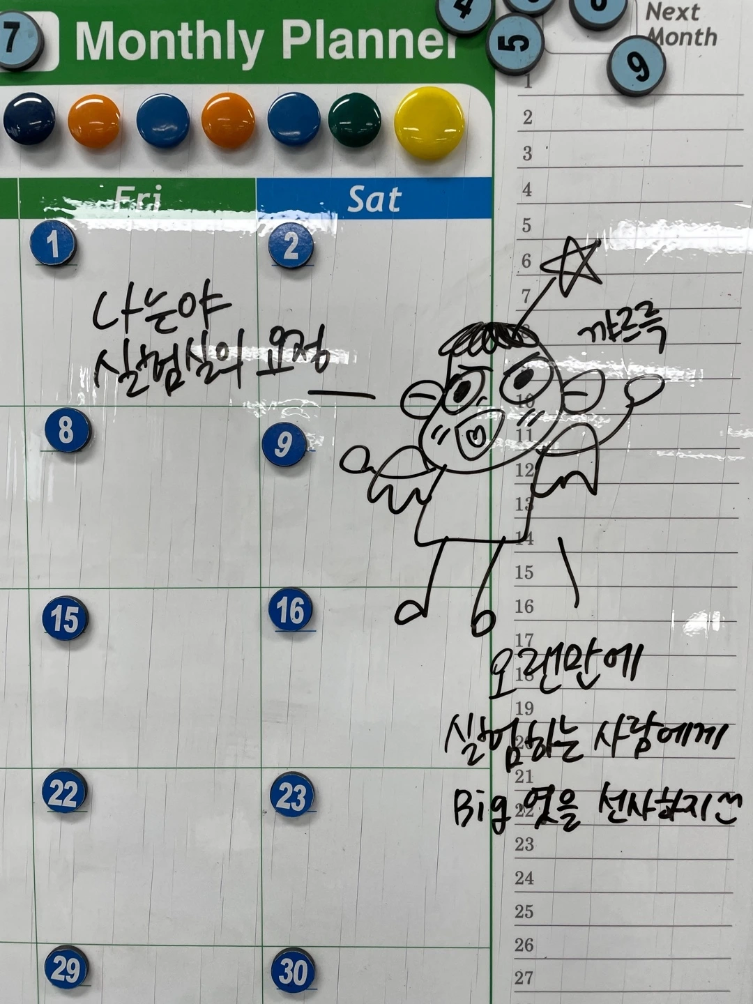 하루아침에 뚝딱 되는 건 없다는 걸 또다시 새롭게 느끼는 요즘, 실험실 요정은 호락호락한 상대가 아니므로, 오랜만의 쾌감을 잠시만 즐기되 너무 자신만만하지 않고 앞으로 있을 시련을 대비해야겠다.