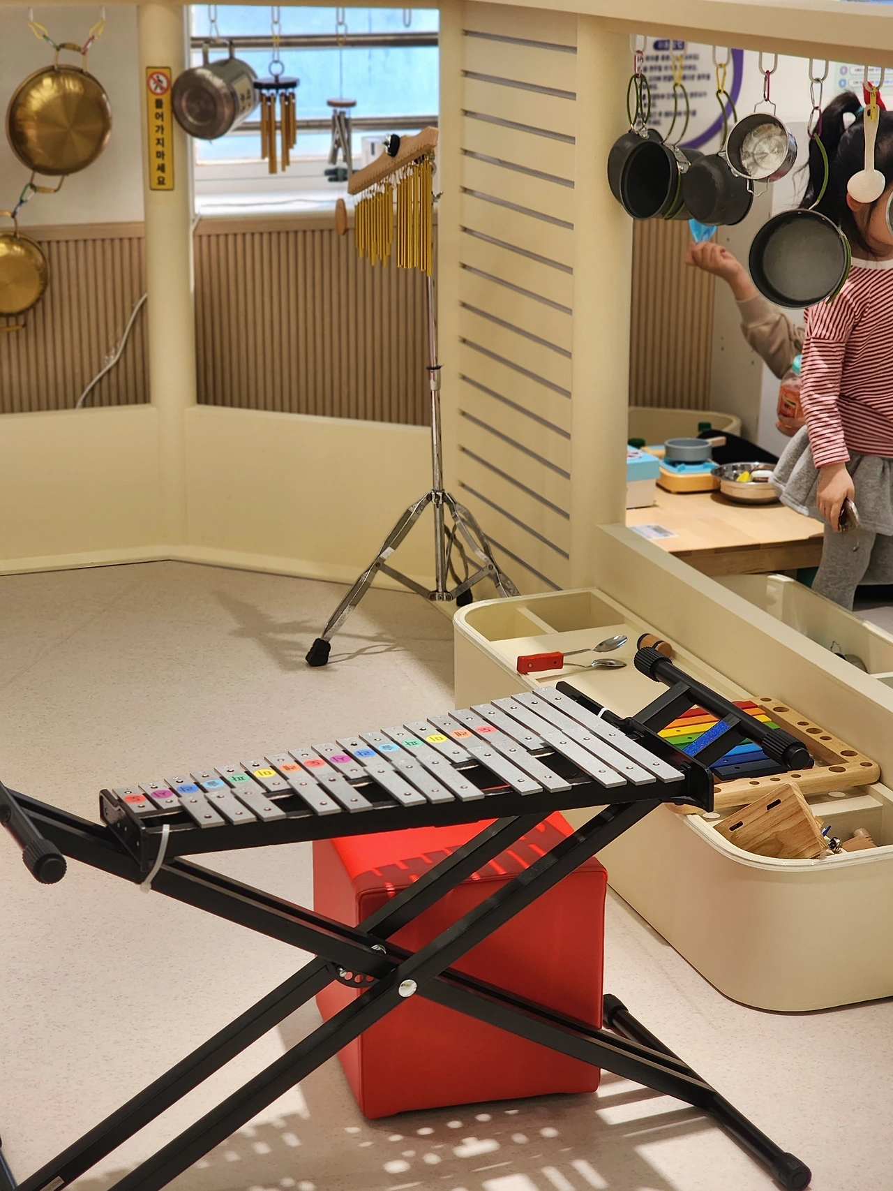피아노를 크게 쳐보거나, 드럼을 두드려보고, 평소에는 접하기 어려웠던 다양한 타악기와 실로폰 같은 악기들을 한 공간에서 자유롭게 체험할 수 있도록 구성되어 있었습니다.
