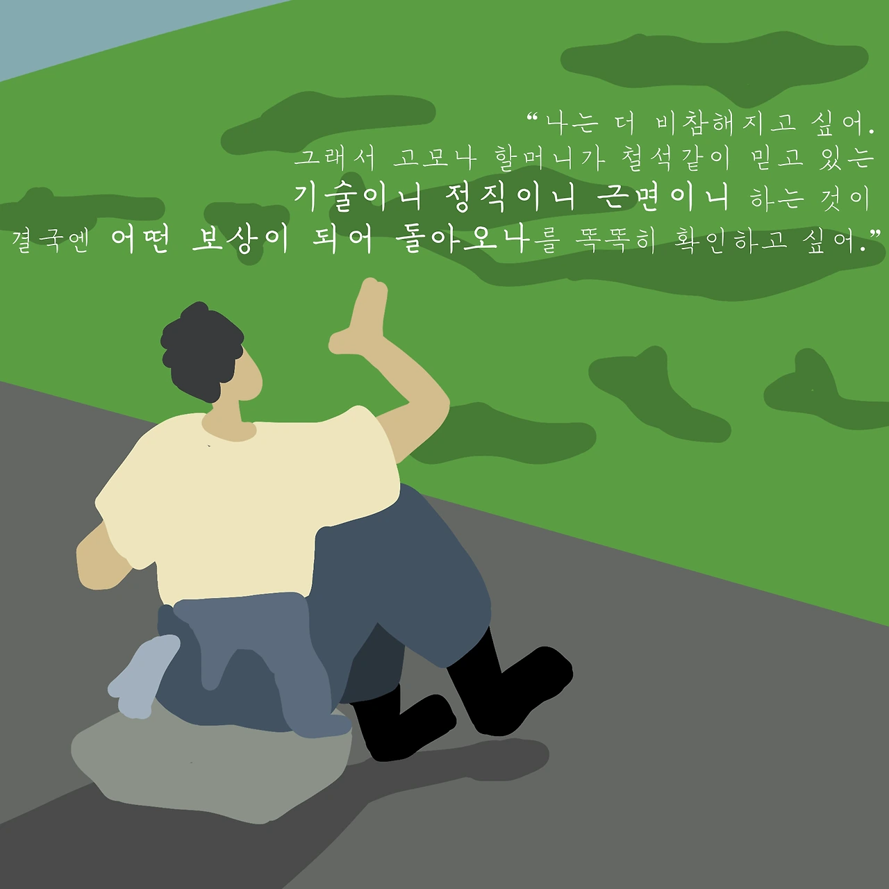 복수라도 하듯 내뱉는 김훈의 말을 똑같이 내뱉었던 때가 있었다. 중학교 때 그림 그리겠다고 떼를 쓰던 나를 온 가족과 담임선생님까지 붙들어 말렸다. 솔직히 그림에 크게 진심이었던 것은 아니기에 가만히 어른들의 말씀에 따라 대학 잘 보낸다는 고등학교로 진학을 했다. 고등학생 시절 공부나 성적으로 힘들 때면 나는 당연하다는 듯 가족에게 스트레스를 풀었고 "어디 엄마 아빠 말대로 잘 되나 보자!"라는 식의 말이나 생각을 되풀이했다.