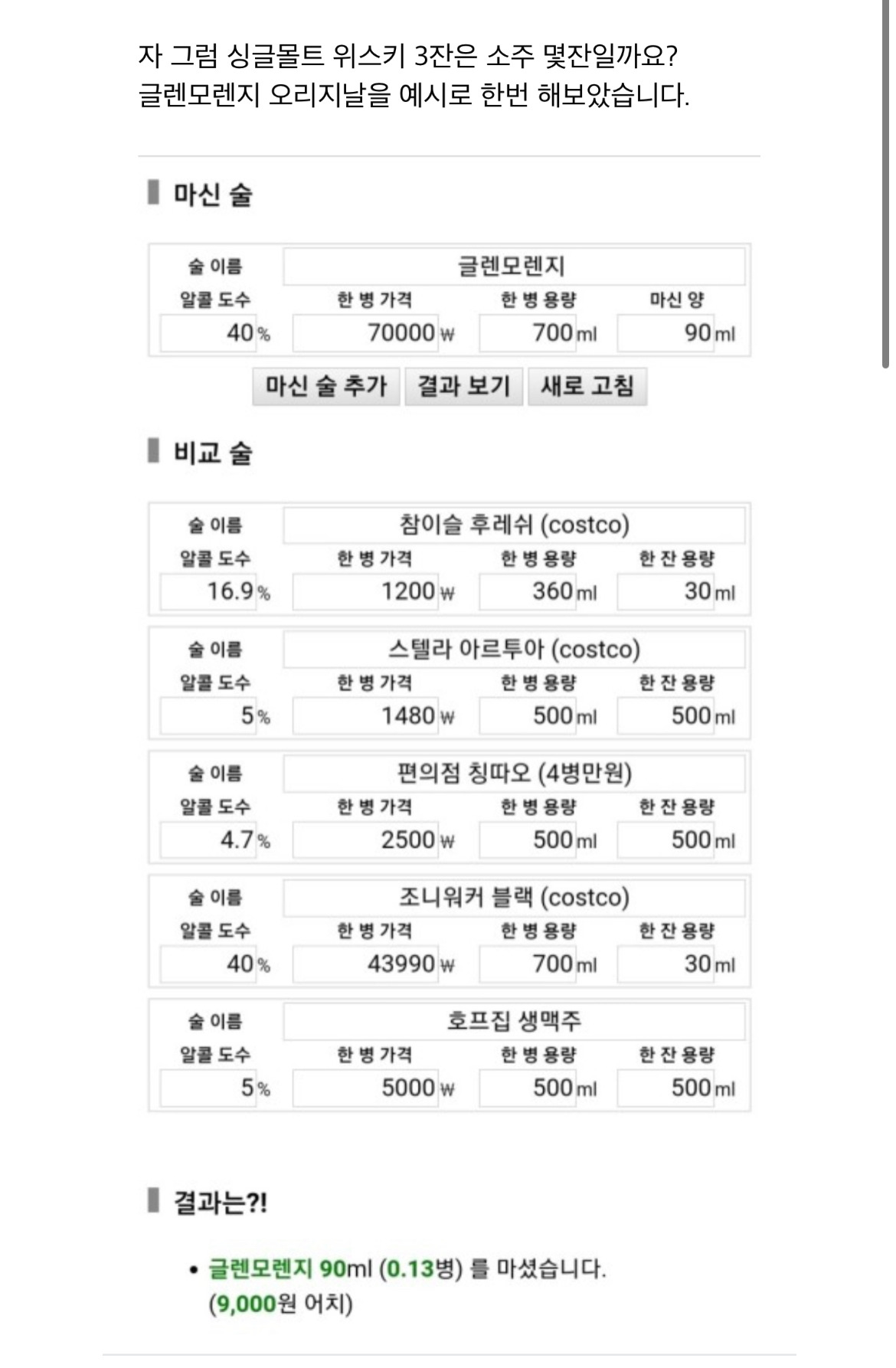 어떤 훌륭한 분이 만드신 주량 계산기를 찾았다.